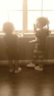 G & K like to look out the window at the neighborhood while they have their snack sometimes.